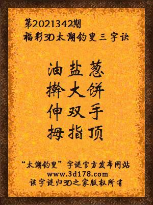 3d第2021342期马后炮解太湖字谜之油盐葱