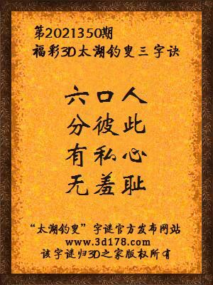 解3d第2021350期太湖字谜: