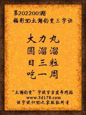 福彩第2022005期3d太湖字谜:大力丸,圆溜溜,日三粒,吃一周