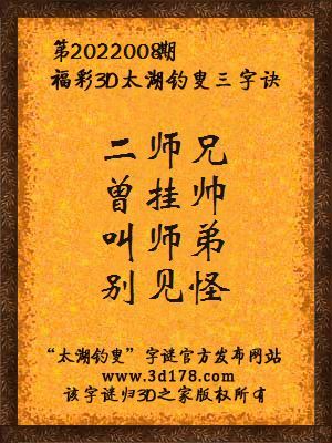 福彩第2022008期3d太湖字谜:二师兄,曾挂帅,叫师弟,别见怪