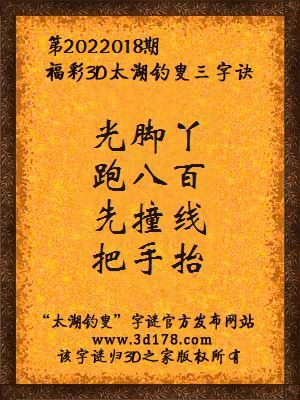 3d第2022018期马后炮解太湖字谜之光脚丫