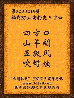 解3d第2022019期太湖字谜: