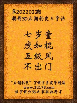 福彩第2022022期3d太湖字谜:七岁童,瘦如棍,五级风,不出门
