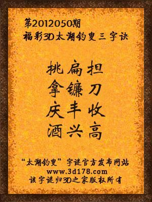 福彩3D第12050期太湖字谜:挑扁担,拿镰刀,庆丰收,酒兴高