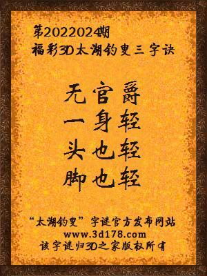 第2022024期杰夫哈迪解3d太湖字谜三字诀
