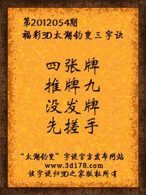 福彩3D第12054期太湖字谜:四张牌,推牌九,没发牌,先搓手