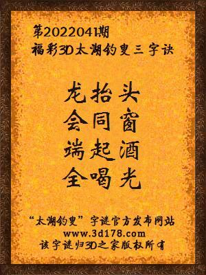 福彩第2022041期3d太湖字谜:龙抬头,会同窗,端起酒,全喝光