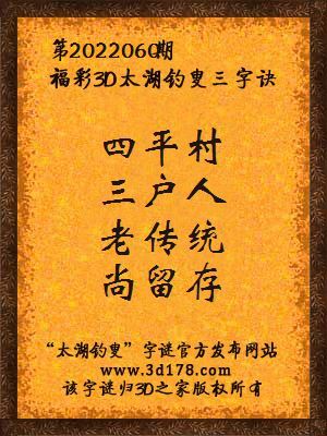 3d太湖字谜第2022060期丽人达人详解:老传统