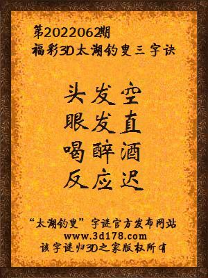 福彩第2022062期3d太湖字谜:头发空,眼发直,喝醉酒,反应迟