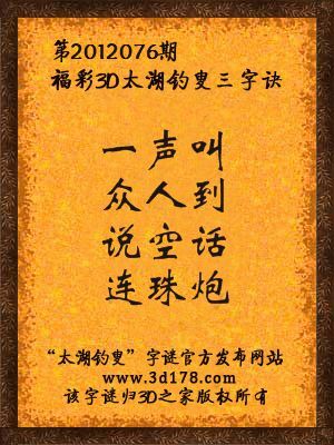福彩3D第12076期太湖字谜:一声叫,众人到,说空话,连珠炮