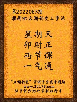 今日3d太湖字谜总汇_2022087期解太湖字谜