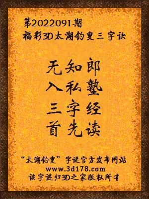 第2022091期丽人达人独家解3d太湖字谜:三字经
