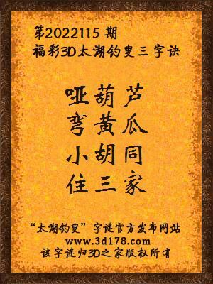 专家杰夫哈迪3d解第2022115期太湖字谜三字诀
