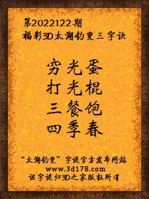 3d第2022122期马后炮解太湖字谜之穷光蛋