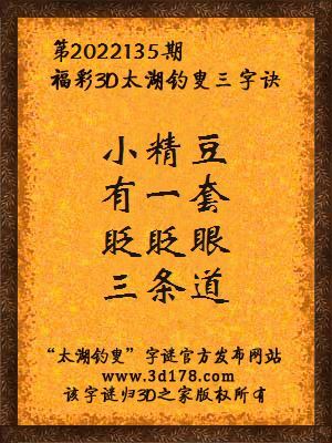 今日3d太湖字谜总汇,3d之家为您详细解答2022135期3d太湖字谜,并汇总多位专家精解太湖字谜供参考。