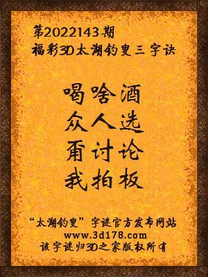 3d第2022143期马后炮解太湖字谜之喝啥酒