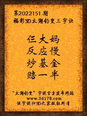 解3d第2022151期太湖字谜:
