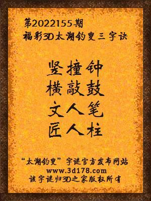 3d第2022155期马后炮解太湖字谜之竖撞钟