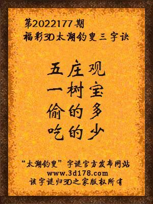 解3d第2022177期太湖字谜: