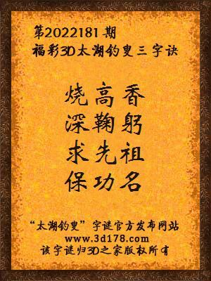福彩第2022181期3d太湖字谜:烧高香,深鞠躬,求先祖,保功名