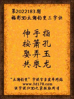 福彩第2022183期3d太湖字谜:伸手指,按箫孔,娶弄玉,共乘龙