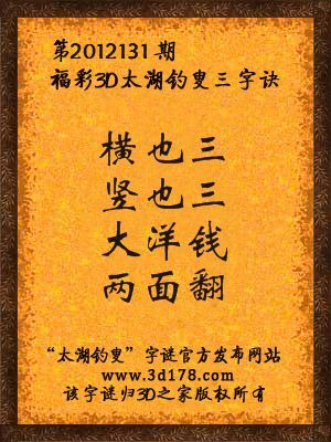 福彩3D第12131期太湖字谜:横也三,竖也三,大洋钱,两面翻