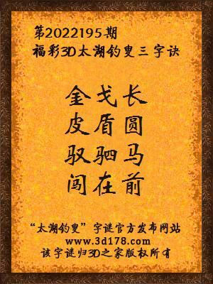 福彩第2022195期3d太湖字谜:金戈长,皮盾圆,驭驷马,闯在前