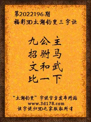第2022196期专家真实谎言解3d太湖字谜:九公主
