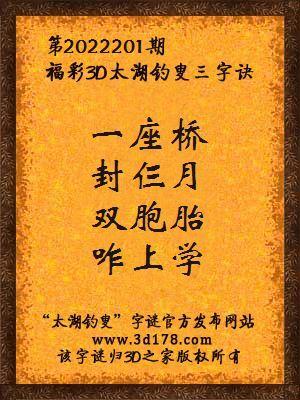 福彩第2022201期3d太湖字谜:一座桥,封仨月,双胞胎,咋上学