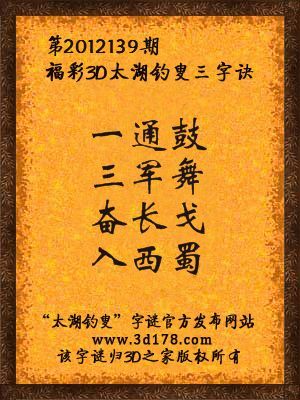 解福彩3d第2012139期太湖字谜