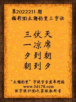 福彩第2022211期3d太湖字谜:三伏天,一凉席,夕到朝,朝到夕