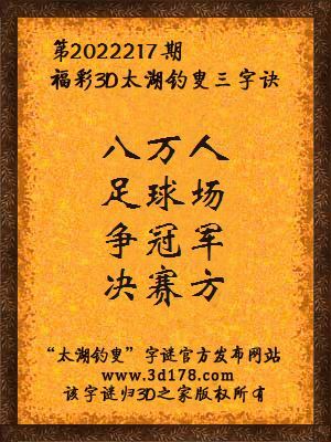 解3d第2022217期太湖字谜: