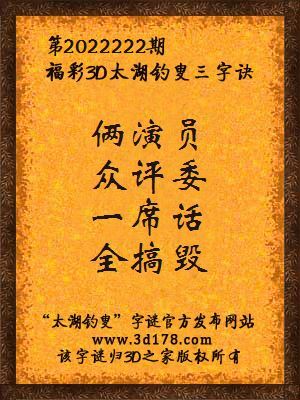 福彩第2022222期3d太湖字谜:俩演员,众评委,一席话,全搞毁