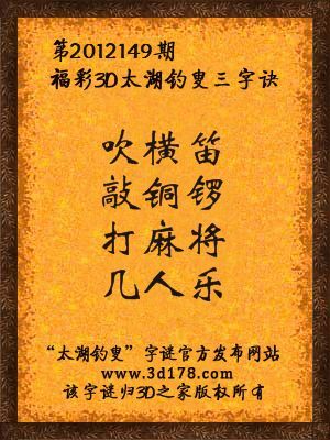福彩3D第12149期太湖字谜:吹横笛,敲铜锣,打麻将,几人乐