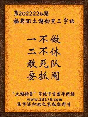 3d第2022226期马后炮解太湖字谜之一不做