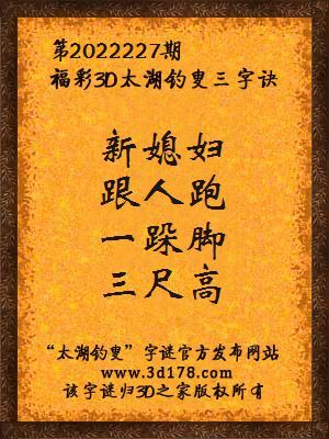 3d马前屁解太湖字谜第2022227期:新媳妇,跟人跑