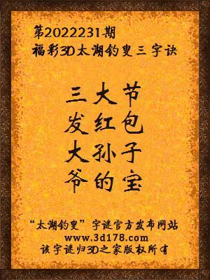 3d马前屁解太湖字谜第2022231期:三大节,发红包