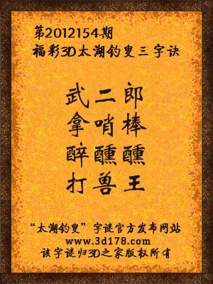 福彩3D第12154期太湖字谜:武二郎,拿哨棒,醉醺醺,打兽王