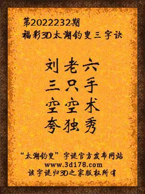3d马前屁解太湖字谜第2022232期:刘老六,三只手