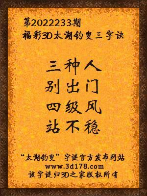 3d马前屁解太湖字谜第2022233期:三种人,别出门