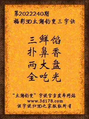 3d第2022240期马后炮解太湖字谜之三鲜馅