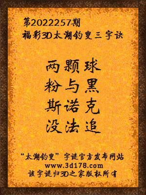 福彩第2022257期3d太湖字谜:两颗球,粉与黑,斯诺克,没法追