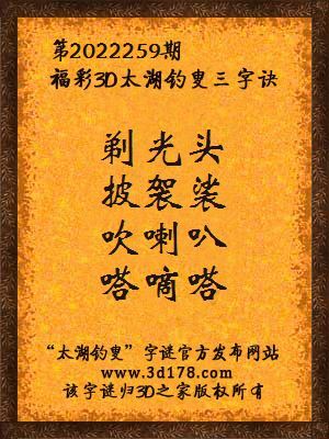 今日3d太湖字谜总汇_2022259期解太湖字谜