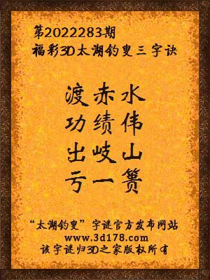 第2022283期3d太湖字谜曹州客解分析预测:胜负难料