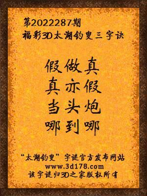3d马前屁解太湖字谜第2022287期:假做真,真亦假