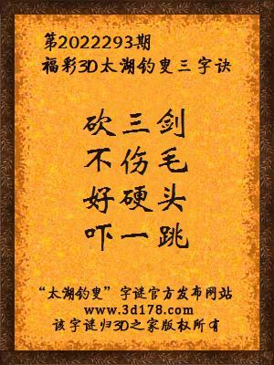 3d第2022293期马后炮解太湖字谜之砍三剑