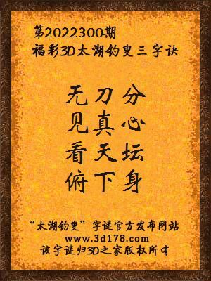 福彩第2022300期3d太湖字谜:无刀分,见真心,看天坛,俯下身