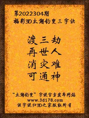 福彩第2022304期3d太湖字谜:渡三劫,再世人,消灾难,可通神