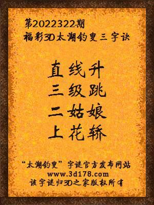 3d马前屁解太湖字谜第2022322期:直线升,三级跳