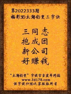 解3d第2022333期太湖字谜: